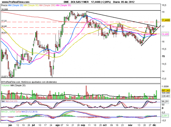 En la sesión de hoy el valor no solo consiguió romper los 17€ sino que además ha superado la resistencia importante que tenía en 17,32€.