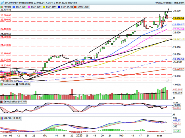 DAX: Cierra por debajo de 23080 tras el “golpe” de realidad.