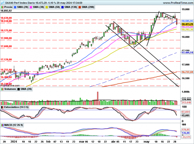 A corto plazo el nivel de 18630 pasa a ser la primera resistencia en caso de rebote.