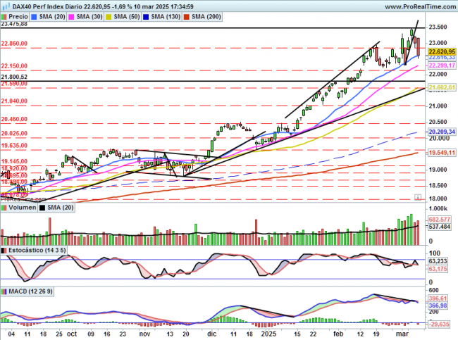 El estocástico y el MACD han vuelto a dar señal de venta tras la caída de este lunes.