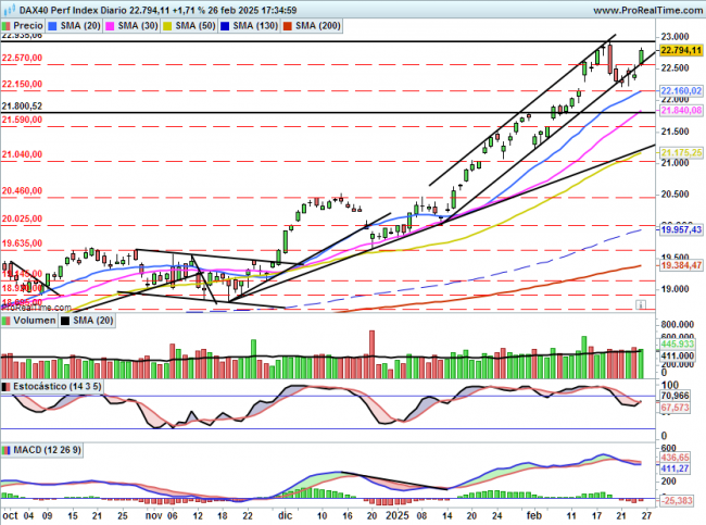 Superación de 22580 lo que implicaba nuevo movimiento a máximos con objetivo en 22935 puntos.