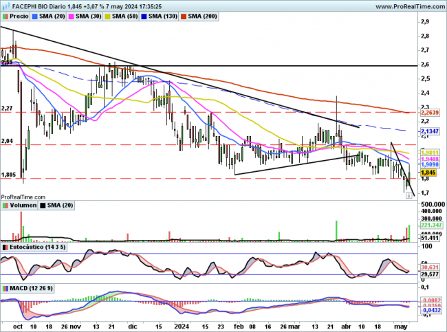 FACEPHI: Confirma la ruptura de 1,81€ con un volumen importante.