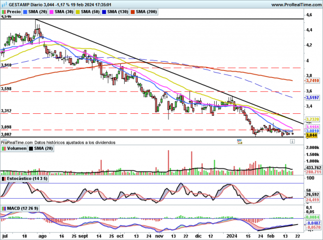 Por debajo en caso de perder 3€ es posible que regrese a mínimos no vistos desde 2022 en los 2,60€