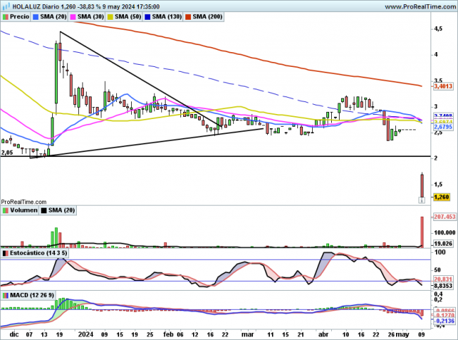 Los resultados del 1º trimestre y expectativas para conjunto del ejercicio de momento no han servido de nada, el precio ha perdido más de la mitad del valor que tenía antes de la presentación de resultados.