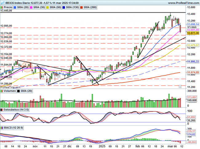 El índice ha roto al cierre lo que fue el mínimo anterior en 12995 puntos.