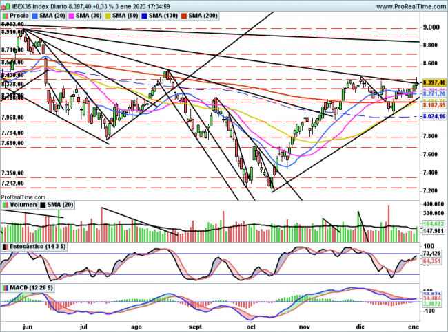 Para corto plazo poco o nada cambia respecto a lo comentado ayer , si supera la resistencia de 8430 es probable que pueda buscar niveles de 8600 puntos.