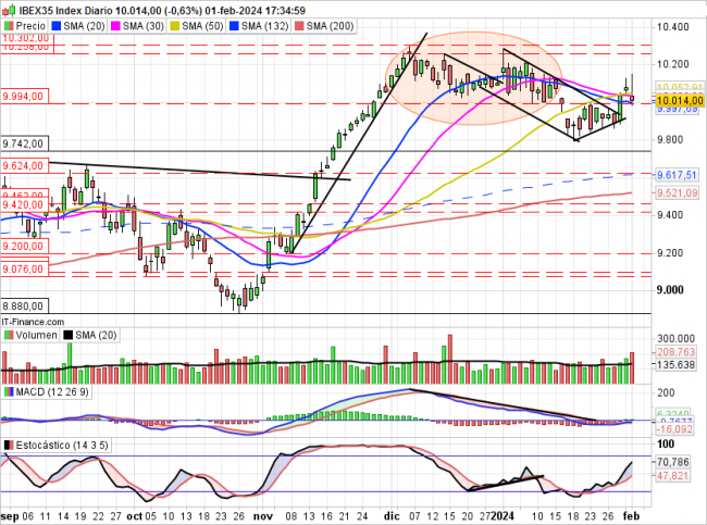 El MACD ha girado al alza, algo que no ocurría desde el 11 de diciembre, el estocástico sigue en positivo.