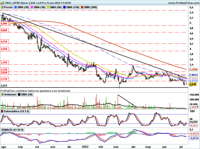 Sigue totalmente muerta la cotización y con estos volúmenes aun consiguiendo recuperar al cierre 2,77€ poca credibilidad tiene, debería subir y la demanda situarse por encima de dicho precio para ser creíble, solo así se podría aspirar de nuevo a buscar al menos la zona de 3,10€ y posteriormente 3,40€.
