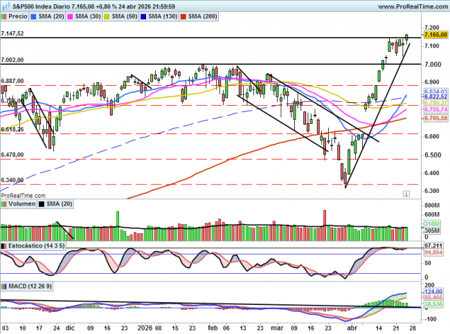Para corto plazo la superación de la resistencia de 7150 puntos implica la entrada del índice en subida libre.