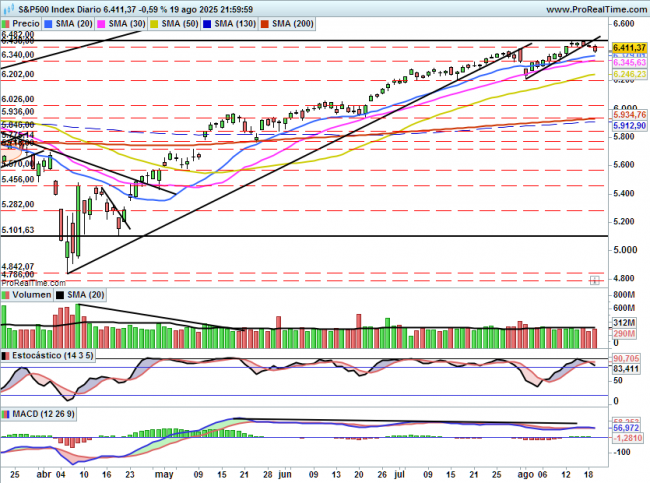 El estocástico se mantiene en niveles de sobrecompra, el MACD si bien se mantiene en positivo, sigue con la divergencia bajista desde mayo.