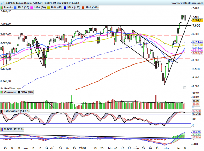 Si pierde 7000 si que todo se complicaría, siendo el objetivo principal el de cerrar el GAP alcista de 6887 y mas abajo 6776 puntos.