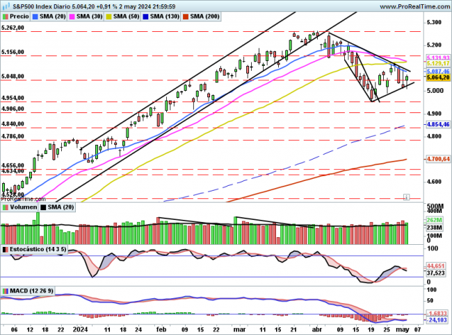 De mantenerse por debajo de 5100 existe riesgo de recorte nuevamente hacia la zona de 4954 puntos.