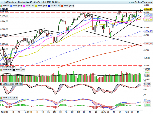 De momento sigue por encima del nivel clave de 6100, mientras sea asi sigue en subida libre, puede llegar hasta donde quiera.