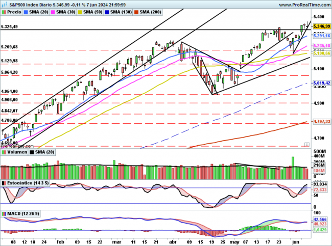 Por arriba lo de siempre, mientras respete la zona de 5325 sigue la subida libre.