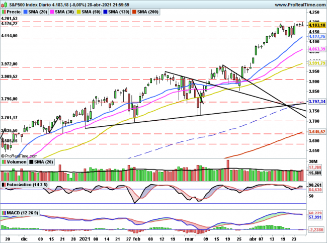 De momento caos , el índice ha marcado un nuevo mínimo y se aproxima ya al importante soporte de 5660, una zona que en el pasado fue resistencia y que en caso de ser perforada si que ya se podría hablar de un cambio de escenario a “bajista”