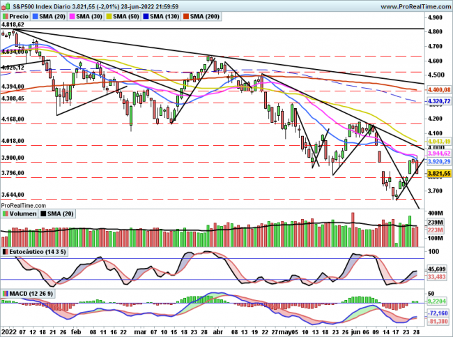 En caso de aguantar la zona de 3796 no se descarta que pueda intentar llegar hacia el objetivo pendiente de 4018 puntos.
