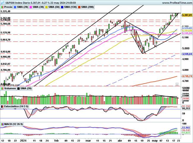 Dicho esto, para mañana si supera 5325 continuaría con la subida libre.