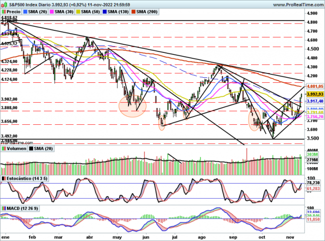 Por ahora calma y tranquilidad, el índice tiene soporte ahora en 3900 puntos y si se mantiene por encima los objetivos se sitúan en 4060 y posteriormente 4124 puntos.