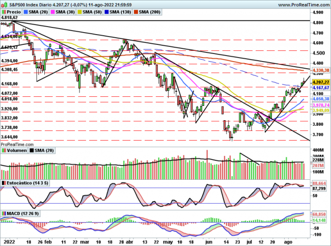 Por debajo si pierde el nivel de 4168 se iniciaría una corrección con objetivo probable en los 4072 puntos.