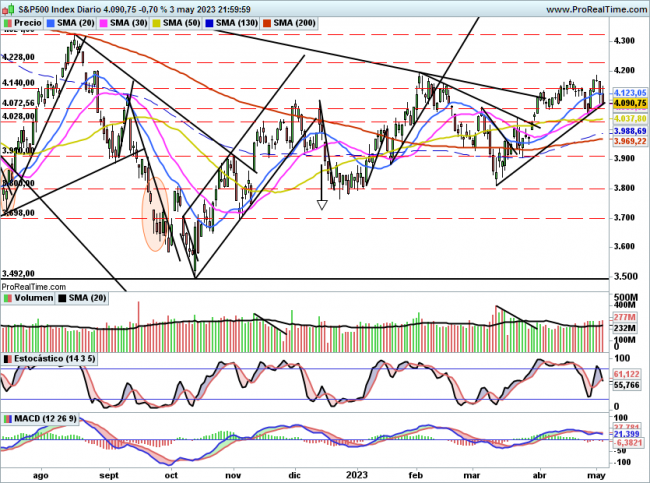 Por arriba en caso de rebote, una figura de vuelta pasaría por superar 4148, en cuyo caso podría intentar nuevamente el asalto hacia 4200/4228 puntos.