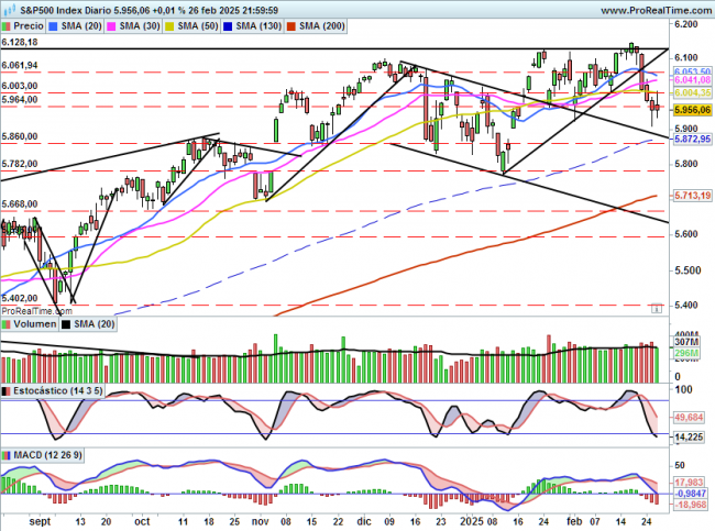 De momento no pudo superar lo que sería la resistencia en 6007 puntos y el mercado nuevamente ha retrocedido, mantiene por tanto la situación idéntica a días anteriores.