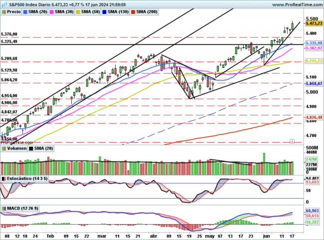Como ya indicamos días atrás el GAP alcista de 5376 es la primera clave y para pensar en una corrección debe perder 5326 puntos.