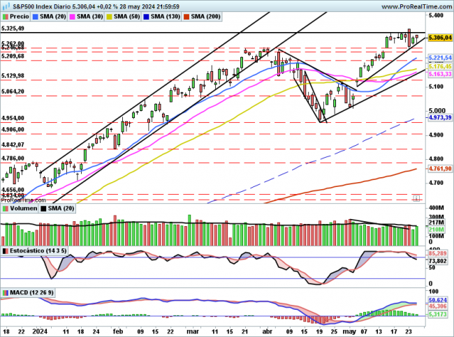 Por debajo en caso de perforar 5246 puntos sí que podría entrar en corrección con objetivos en 5129 puntos.
