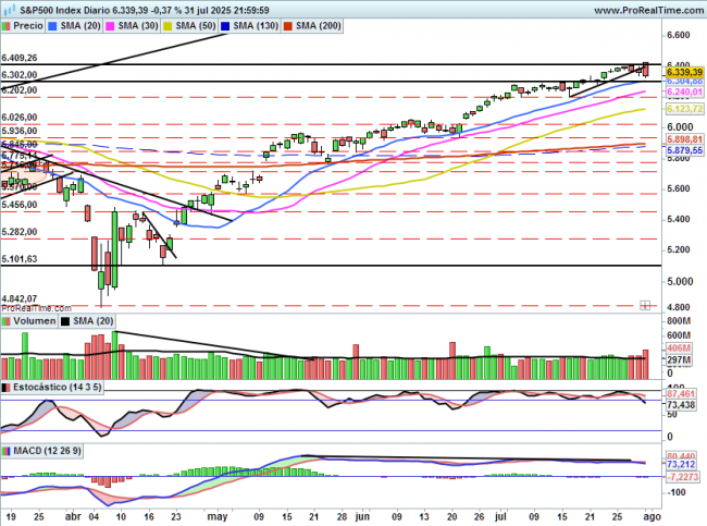 Por arriba mantiene la resistencia en los 6420 puntos.